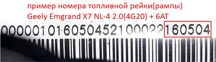Пример номера топливной рейки Geely Emgrand X7 NL4 2.0 6AT (кликните по фото для увеличения)