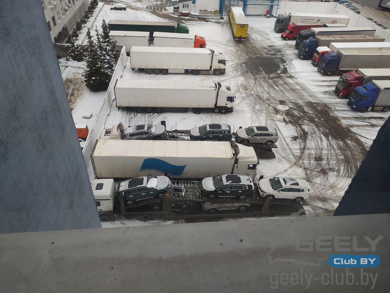 Автовозы с автомобилями Geely Okavango VX11 прибывают на таможню в Жодино, которая расположена близ предприятия Белджи.