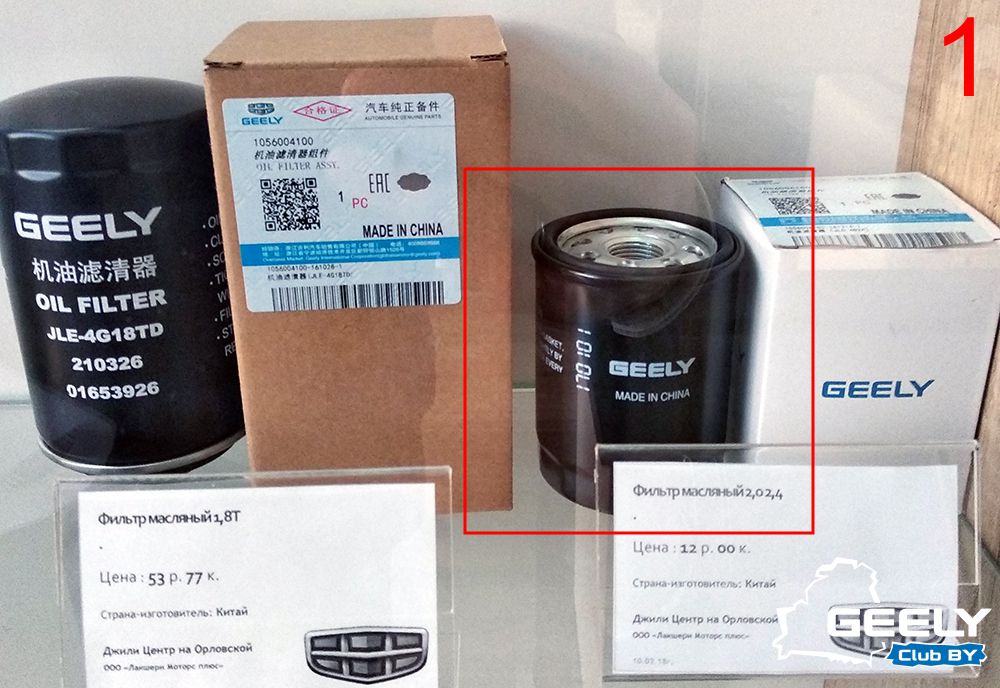 Еще большее их отличие от масляного фильтра на витрине в дилерском центре Geely.