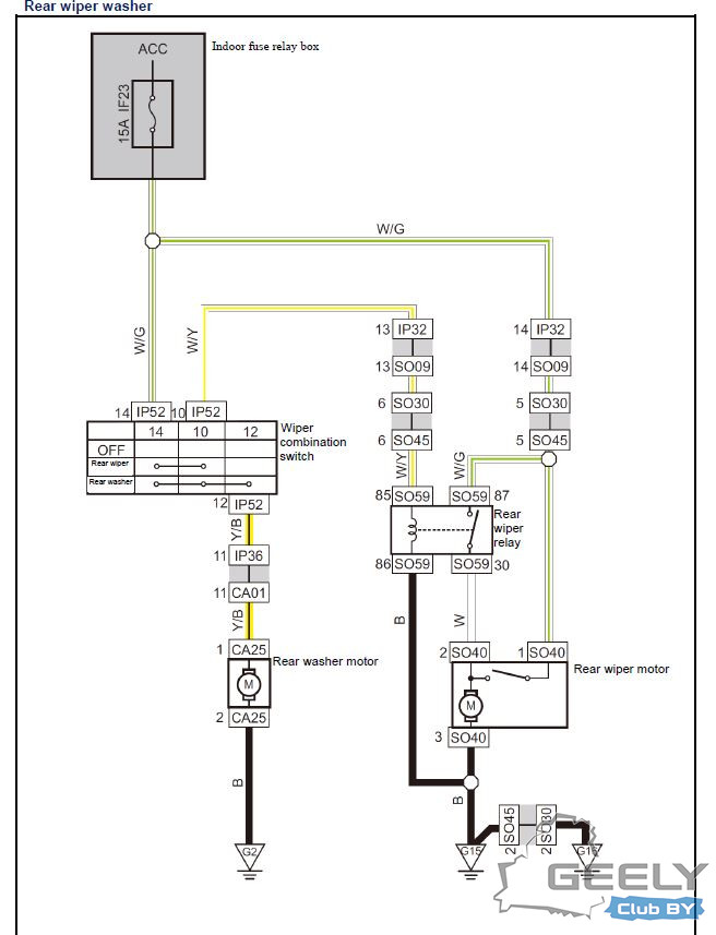 Задний дворник работает через обычное четырёх контактное реле. Там гуляй не хочу. В аннотации к схеме указано реле заднего мотора стеклоочистителя находится рядом с мотором в задней двери. В принципе если менять схему управления задним дворником разумнее цепью управления от под рулевого переключателя. Новой схемы на NL4 к сожалению не найти.