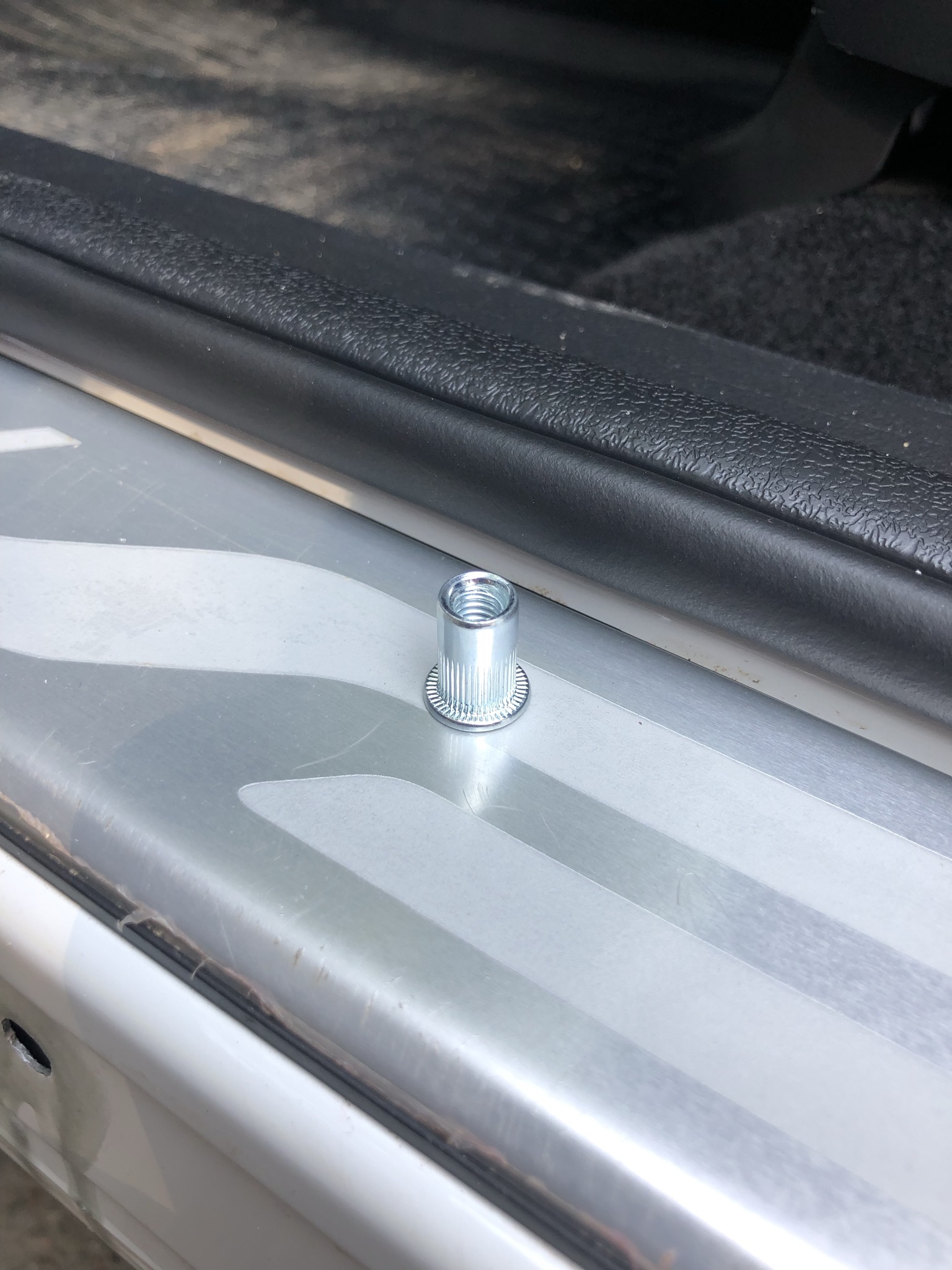 Мой крепеж из набора оказался не тем или от другой марки машины. В общем из него я использовал только два пластиковых пистона. Основу порога крепил на заклепки резьбовые. Надежно и навсегда. За 2,5 часа один и пороги на месте. Есть пару нюансов, но они описаны в посте по ссылке.