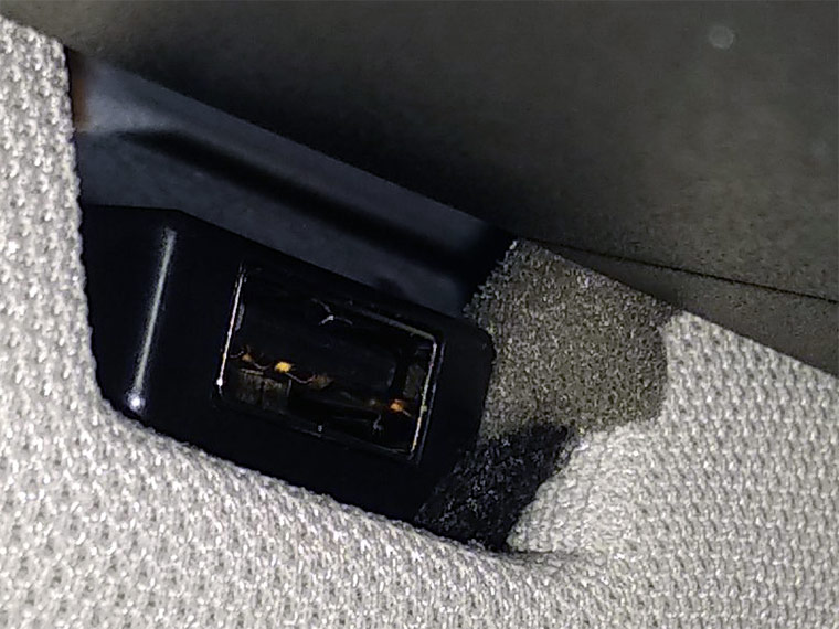 У меня тоже весело. Разъем над зеркалом есть. Я купил регистратор, и при попытке подключить понял, что не могу это сделать. Между отверстием в потолке и самой розеткой USB у меня проходил какой-то кабель в поролоновой серо-коричневой изоляции. Я его заметил с первого дня, но думал, что это "затычка" из поролона. В итоге, оказалось, что нет, причем этот кабель там стоял настолько жёстко, что его сдвинуть было то ещё приключение. В конечном итоге я смог подключить регистратор, но было весело.