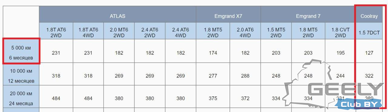 Можно заметить неординарность в таблице ТО гомельского дилера Geely. В таблице присутствует некое