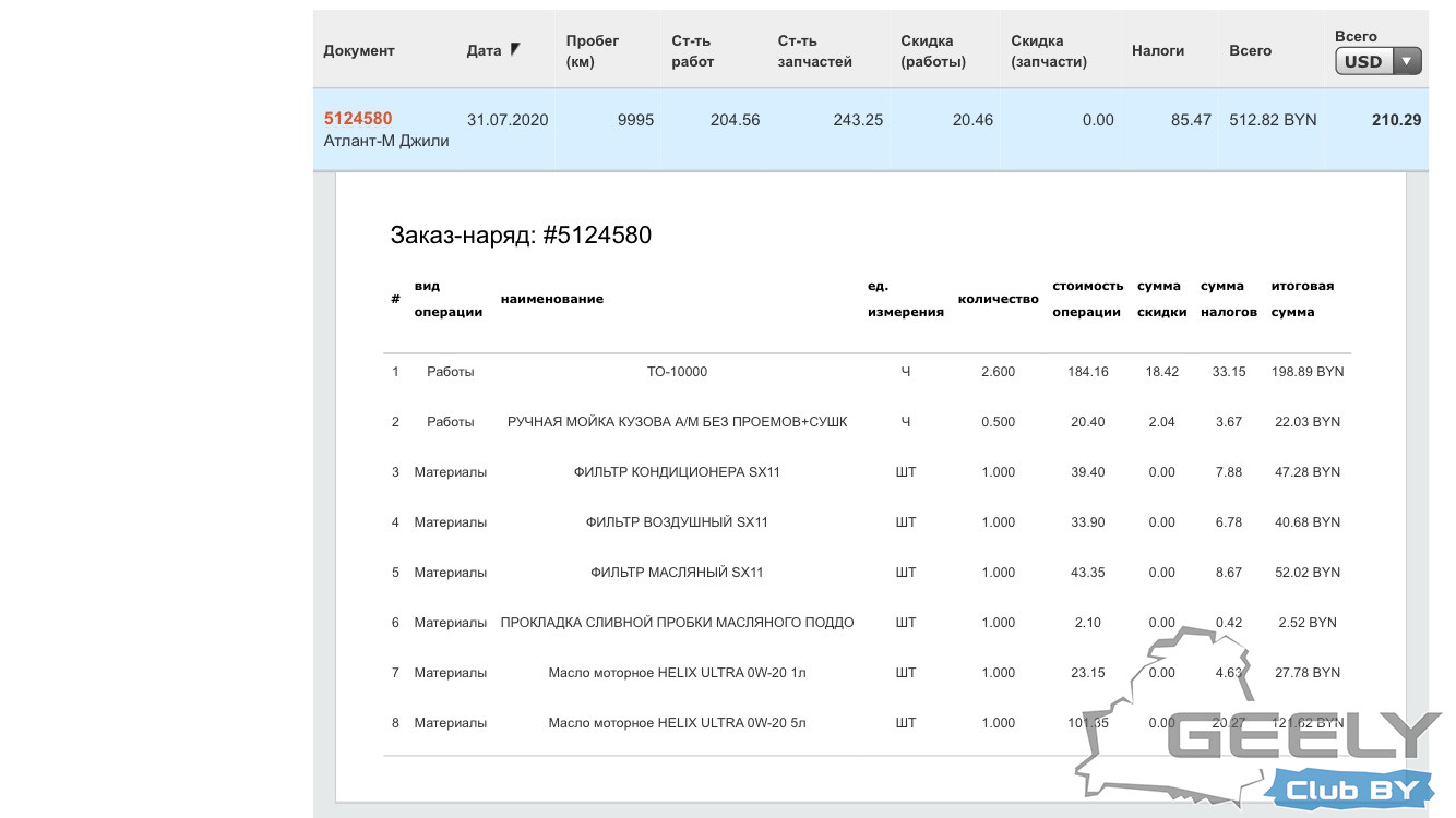 ТО-10000 км / 12 мес. Geely Coolray Техническое обслуживание