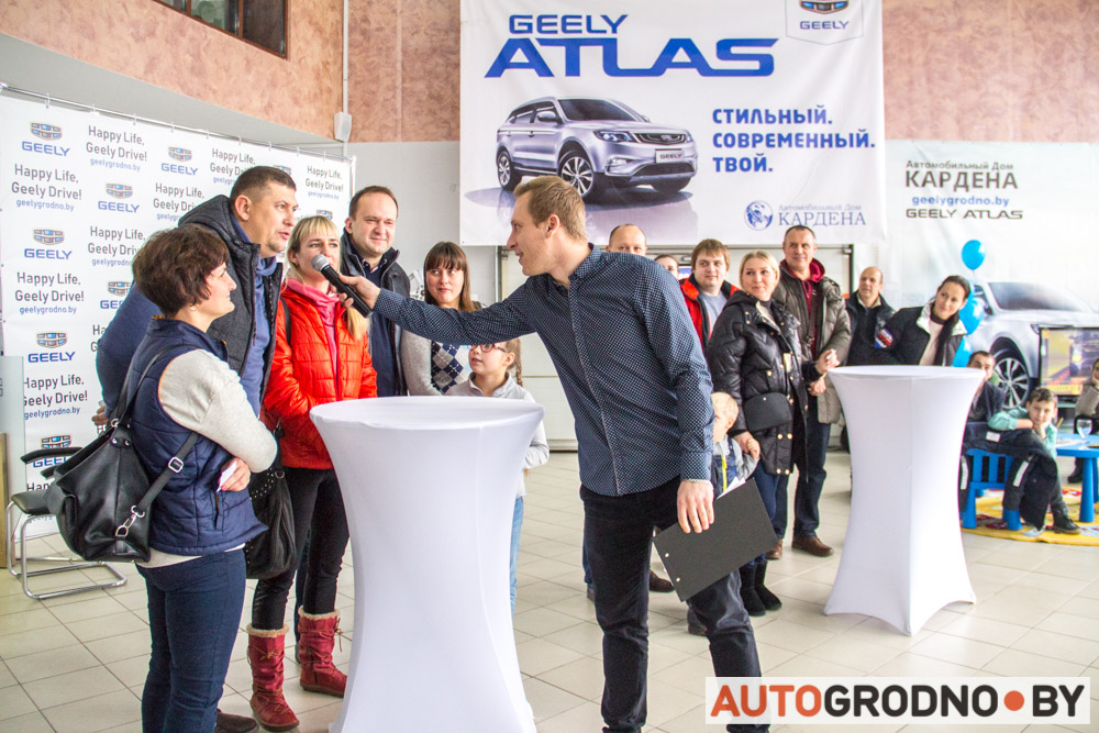 Во время викторины сотрудник "Автомобильного дома Кардена" задавал вопросы на тему компании Geely и ее продукции: "Кто стремительно ворвался на рынок? Кто выкупил Volvo? Грацией какого хищника вдохновлялись дизайнеры Atlas? Что символизирует логотип? Какой автомобиль стал магнитом для зрителей на SunDay?" и так далее.