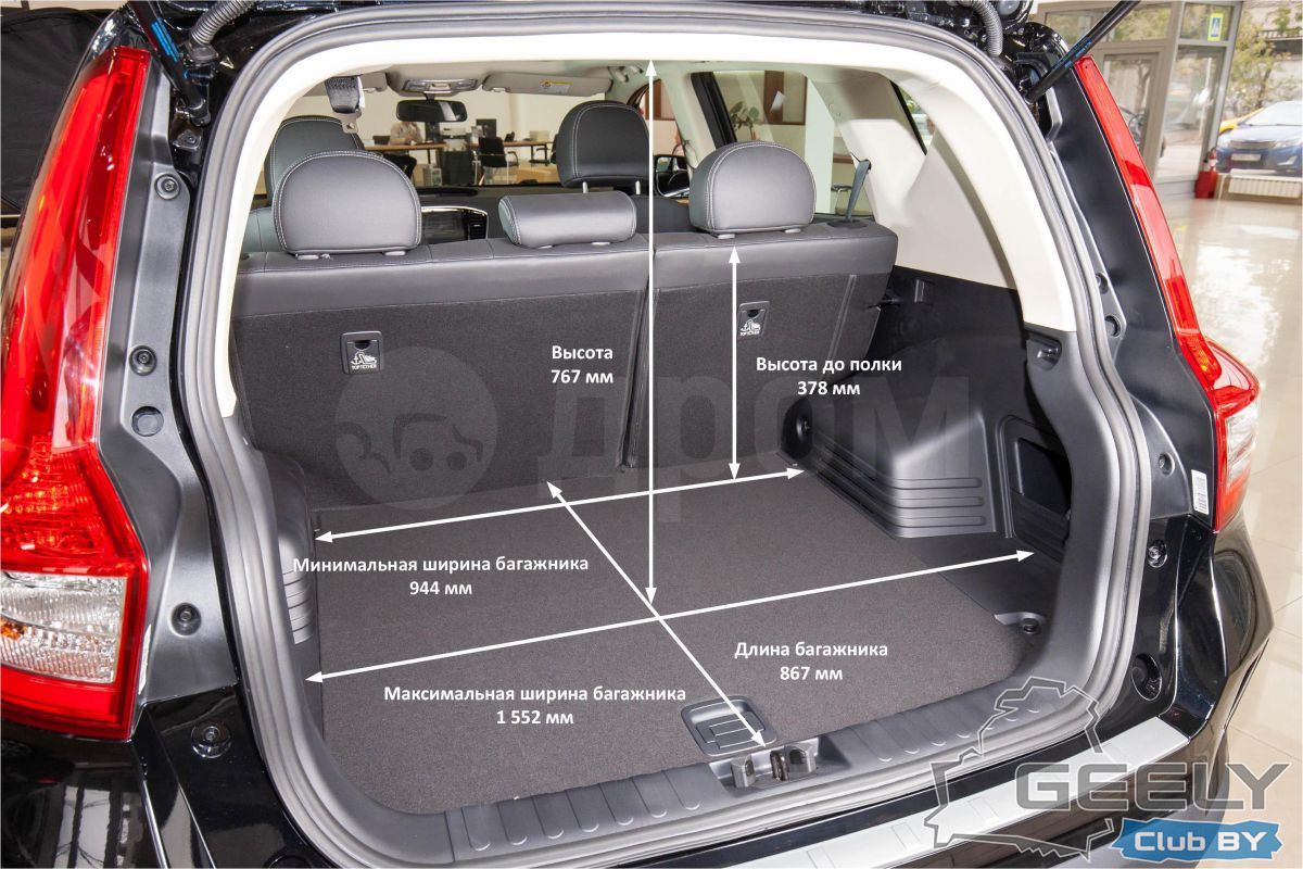 Размеры кузова, салона, багажника, проёмы Geely Emgrand X7 NL-4 (Много фото с размерами)