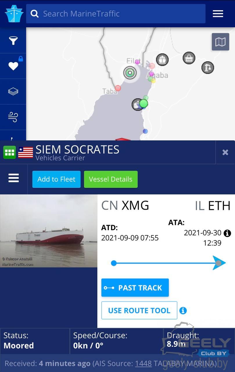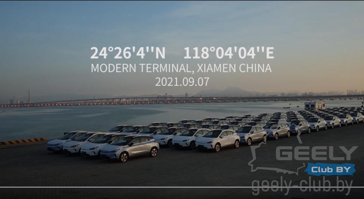 В середине сентября мелькали тематичные заголовки “Электромобили Geometry C начали поставляться в Беларусь и Израиль”, “Geely начала поставки электрокаров Geometry C в Беларусь и Израиль” и т.п. В сети появилось 1,5-минутное видео "Geometry C Is on the Way to Israel" погрузки крупной партии Geometry C на борт SIEM SOCRATES в терминале порта Сямынь (Китай). (Если точнее, то погрузка началась 7 сентября 2021 года, спустя 2 дня судно покинуло порт).