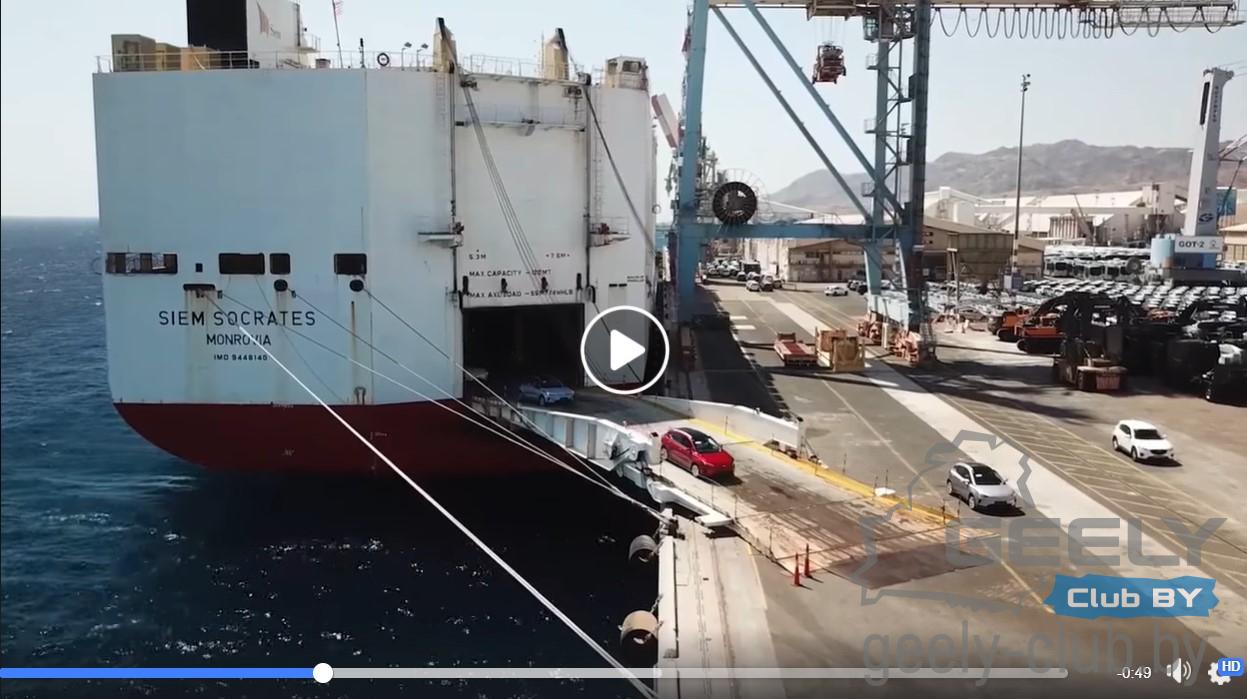По видео насчиталось 96 автомобилей (полагаем, это не все... а лишь загрузка одной палубы судна), большинство из которых белого цвета, несколько меньше в общей массе цвета синий металлик, еще меньше серый металлик и красных машин буквально единицы (насчиталось - 3). На шинах была читаема надпись Michelin. Все авто из ролика направились в Израиль, где бренд Geely ранее не был представлен никак. А тут сразу знакомство с маркой было начато с “электричек”.