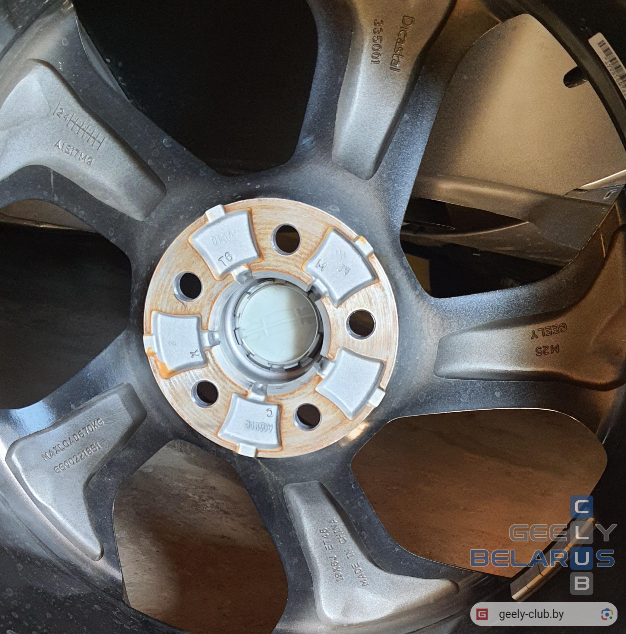 Для проверки снял колесо и зафиксировал инфо по шинам и дискам на авто выпуска 2024 года (VIN ...233), установлены с завода: