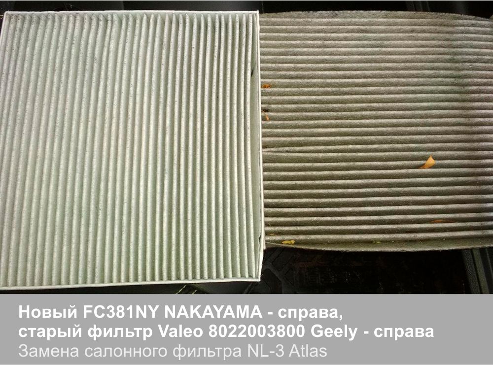 Сравнение старого фильтра 8022003800 Geely Valeo(справа) и нового салонного фильтра FC381NY NAKAYAMA(слева)