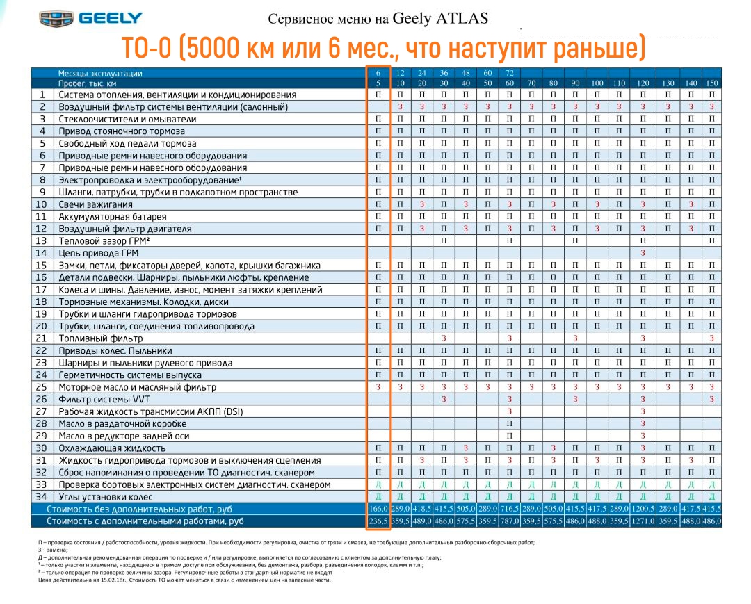 ТО-5000 км / 6 мес. Geely Atlas Техническое обслуживание