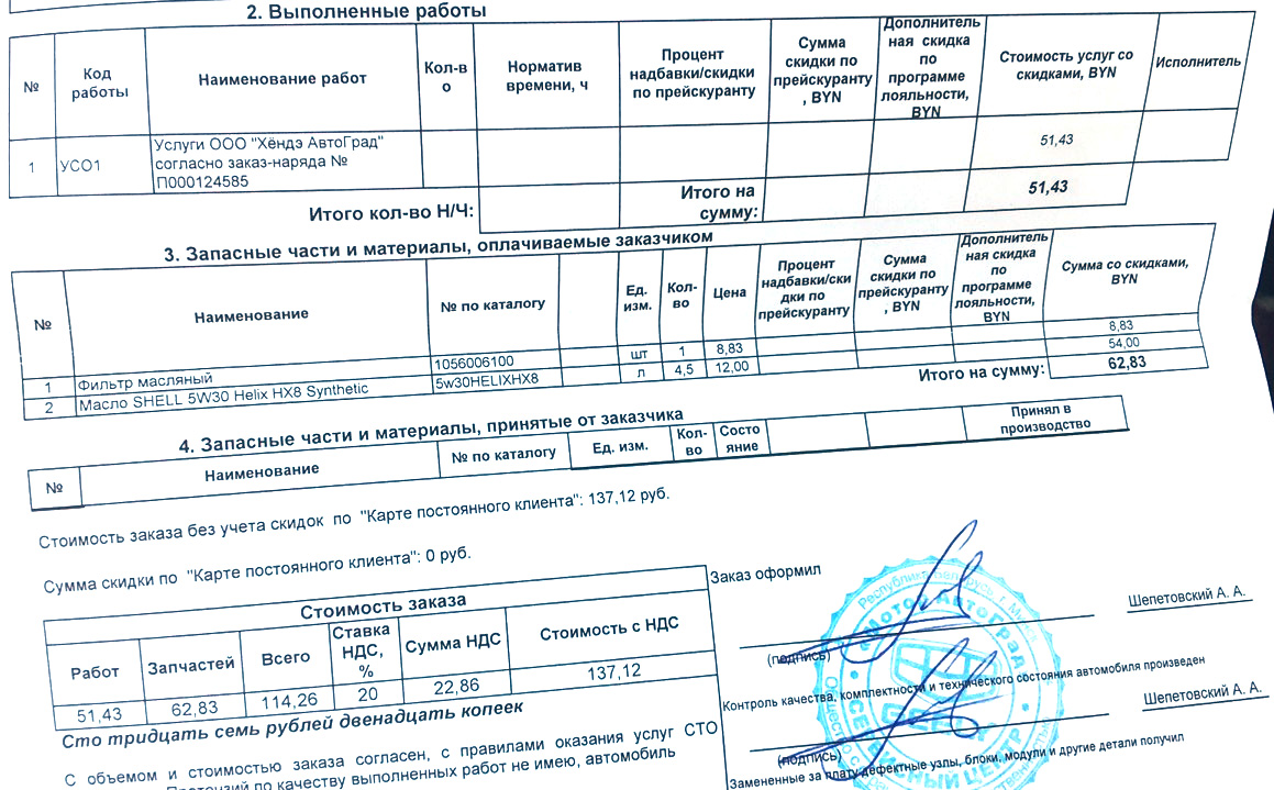 Мы выложим копии актов выполненных работ наших любимых дилеров, поговорим о ценах на ТО, которые уже подросли.