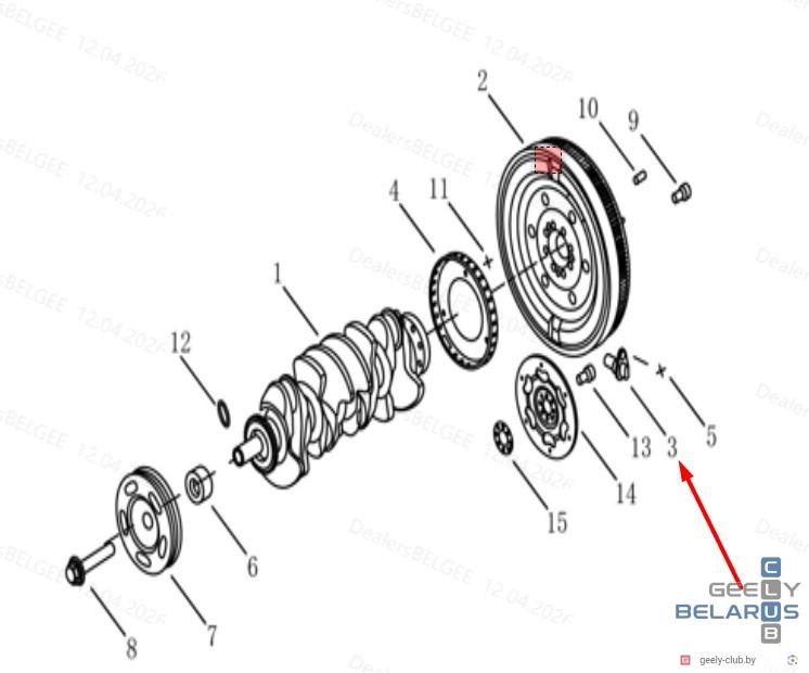Датчик положения коленчатого вала GEELY ATLAS NL-3 1.8T - на схеме
