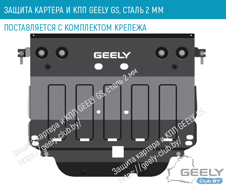 G6) Защита картера и КПП GEELY GS FE-7 (сталь 2 мм, поставляется с комплектом крепежа)