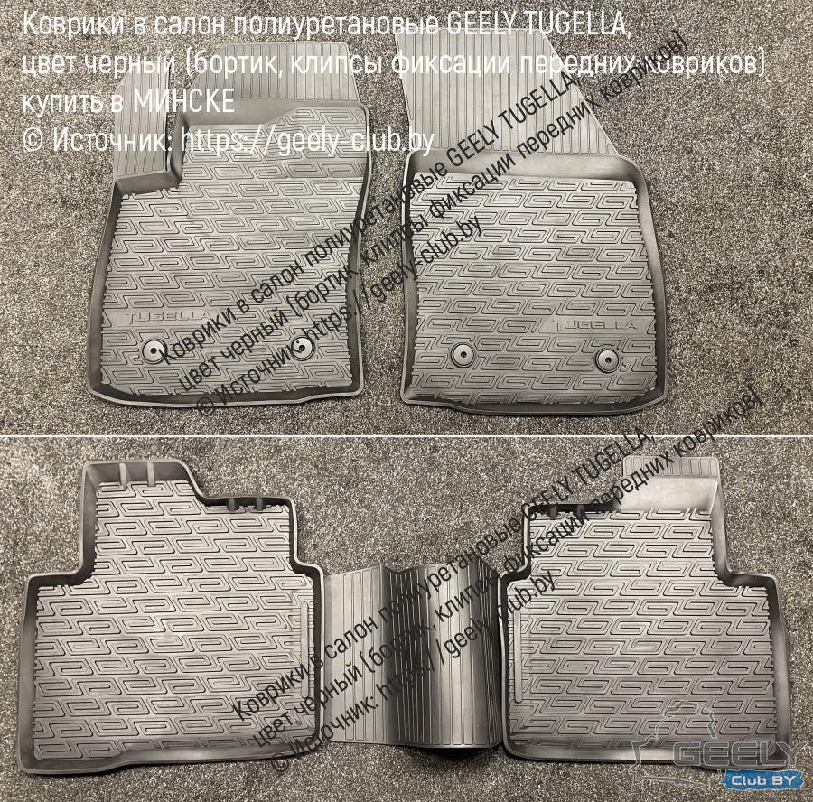T1) Коврики в салон полиуретановые TUGELLA FY11, цвет черный (бортик, клипсы фиксации передних ковров)
