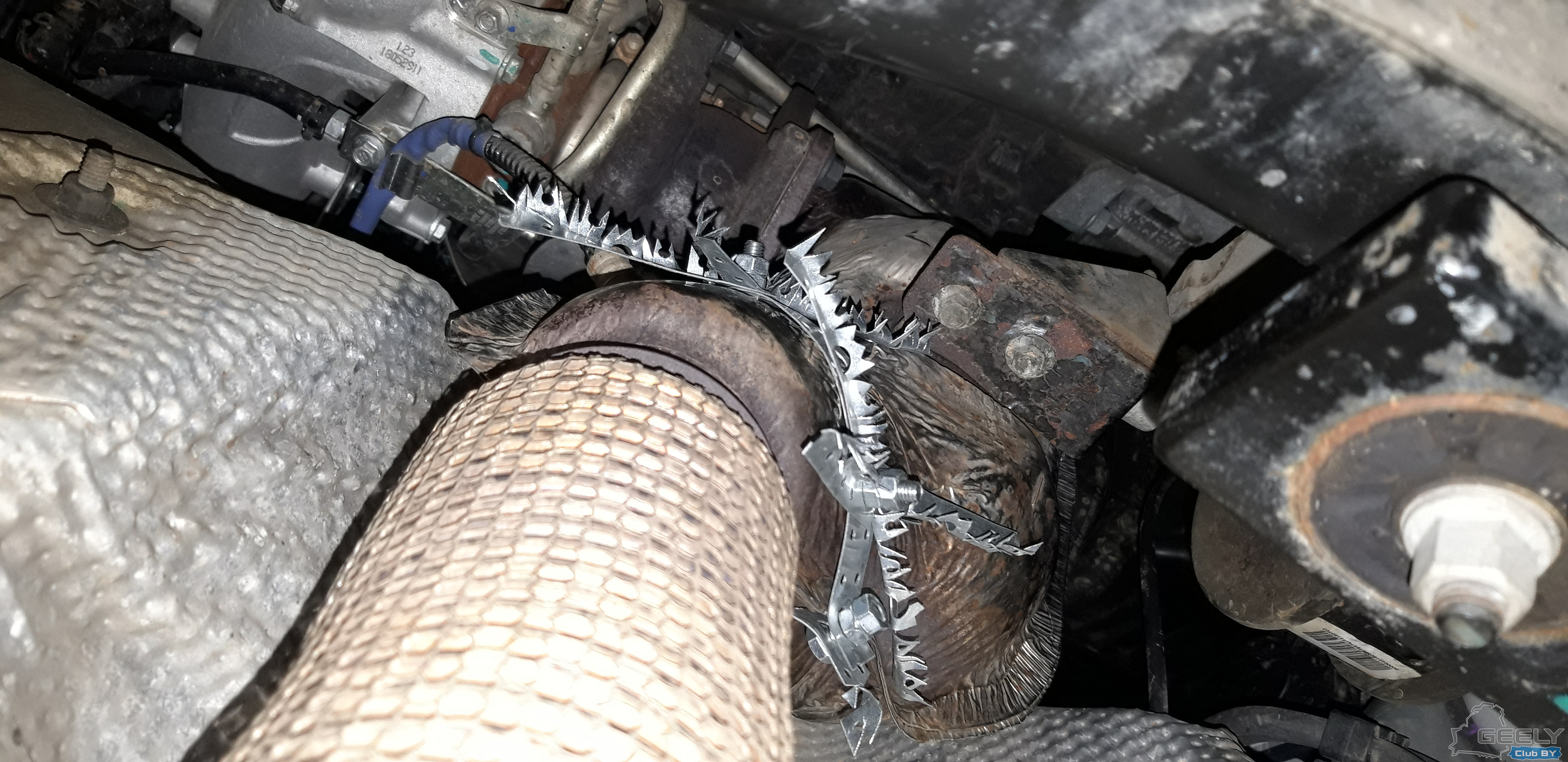 он так же может быть от заднего бачка глушителя он у меня обработан с завода какой то черной смесью