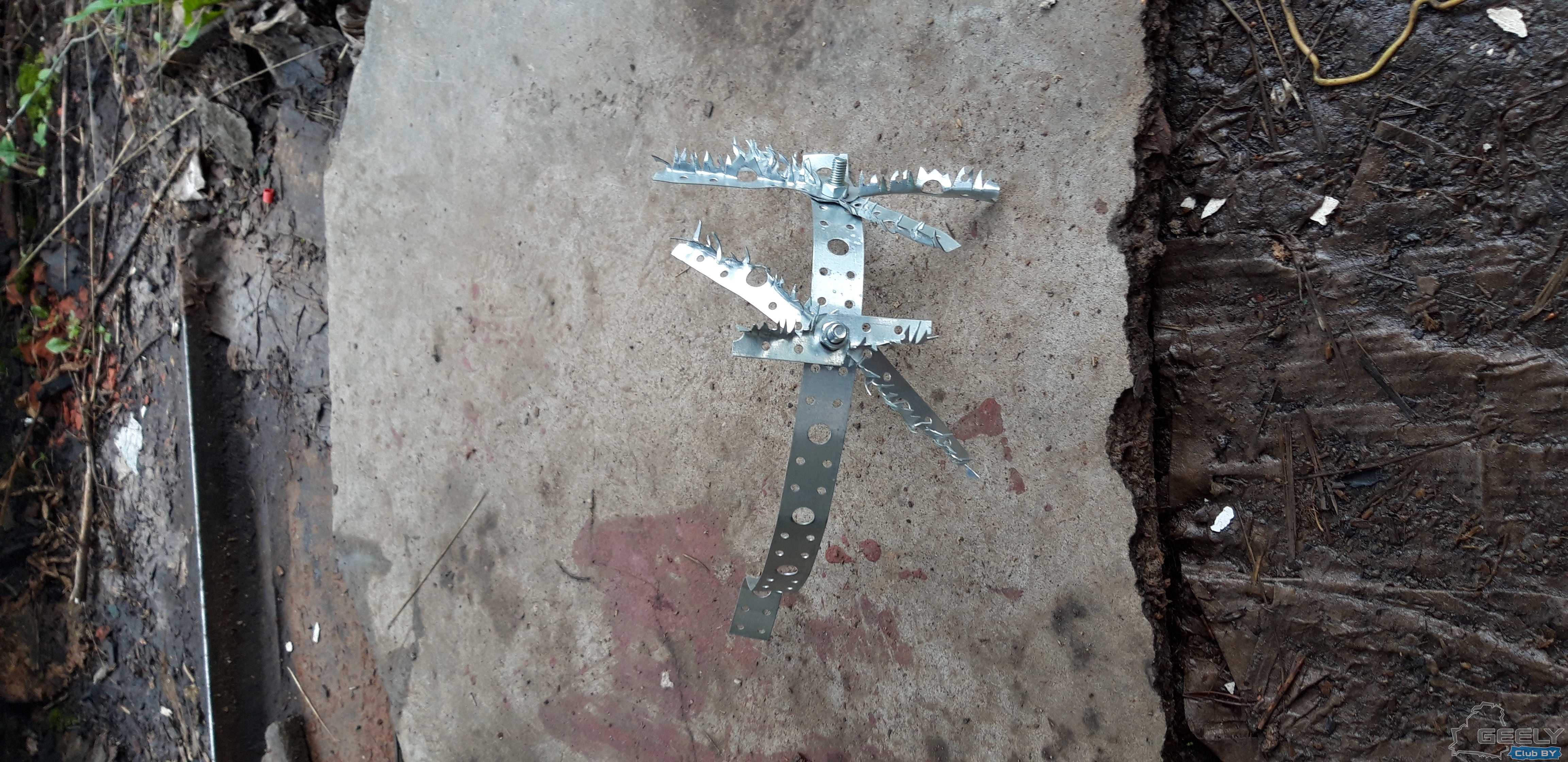 Потом подошел более кардинально. Из металлической ленты вырезал ежика и хомутом прикрепил к указанному кожуху.